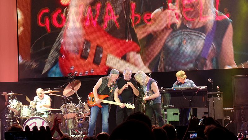 ... ist eine im April 1968 gegründete englische Rockband. Mit ihrem Stil, der vom Klang der Hammond-Orgel, markanten Gitarrenriffs, Improvisation und treibender Rhythmusarbeit geprägt ist, zählt sie zu den ersten und einflussreichsten Vertretern des Hard Rock und des Heavy Metal. Auf den neuen Namen „Deep Purple“ kam die Band nach einer kurzen Tour durch Skandinavien. Der Name lässt sich zwar aus dem Englischen als „tiefes Purpur“ übersetzen und gilt dort als Slangbegriff für LSD,[6] tatsächlich bezieht sich der Name jedoch auf den Swing-Song Deep Purple („When the Deep Purple Falls…“) von Peter DeRose, der als Jazz-Standard gilt und unter anderem durch die Interpretation von Artie Shaw bekannt ist.